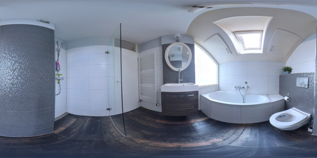 Overloop, grote ouderslaapkamer aan de achterzijde (eventueel te splitsen in twee kamers), slaapkamer aan de voorzijde en een nette badkamer met douche, ligbad, wastafelmeubel en tweede toilet.